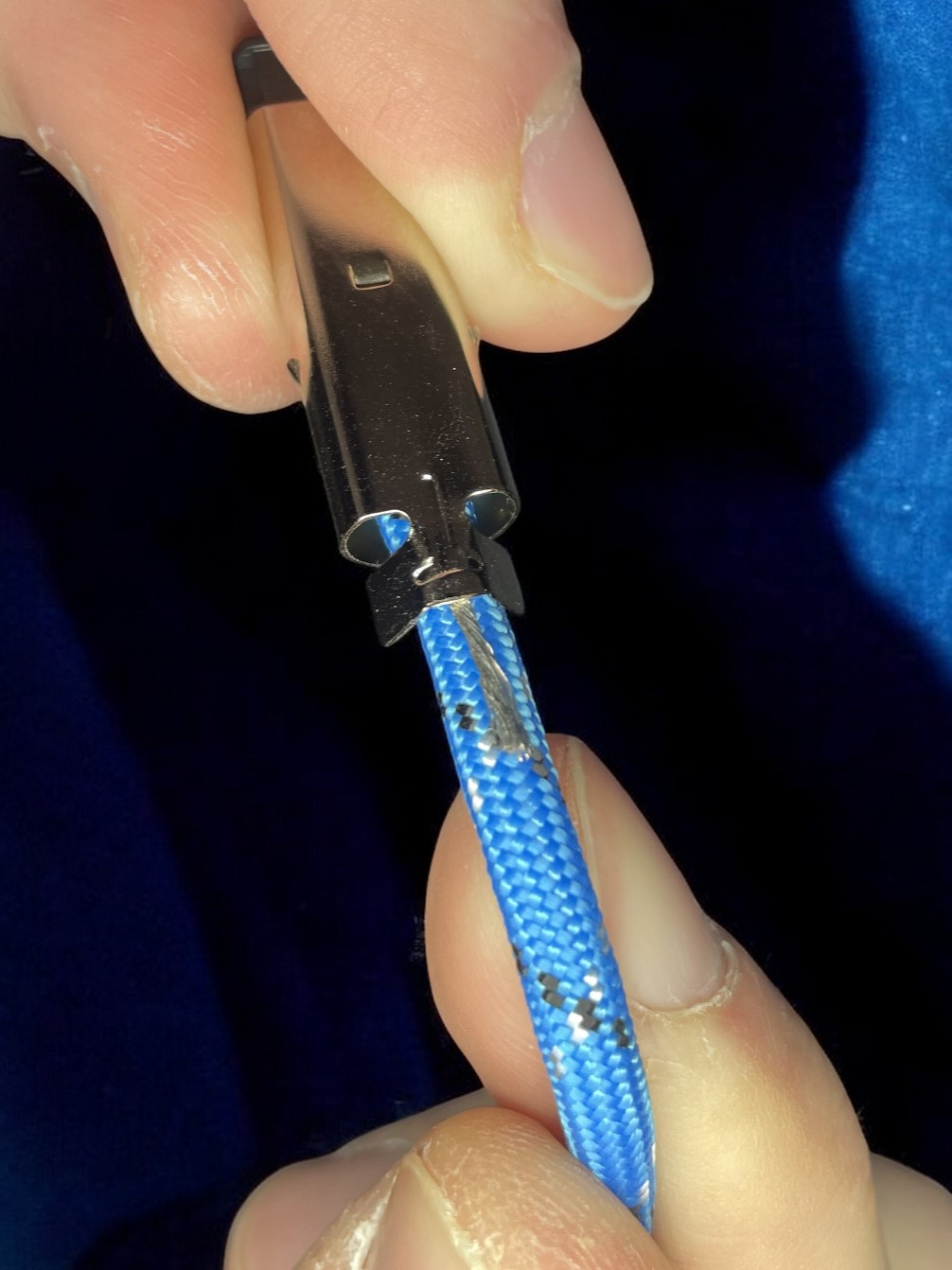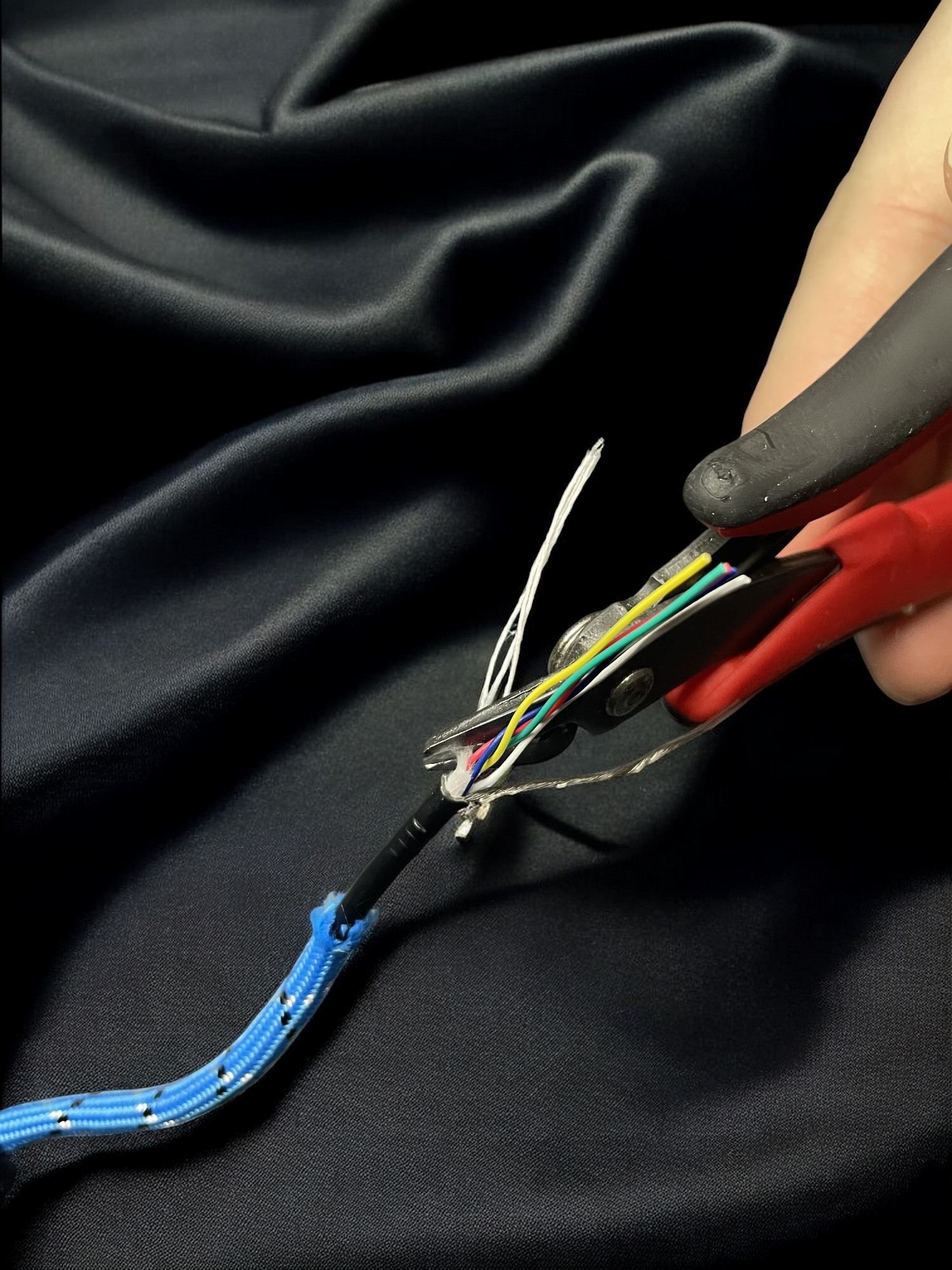 | Pull back some of the paracord to expose the cable underneath. | ![]() |